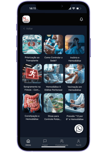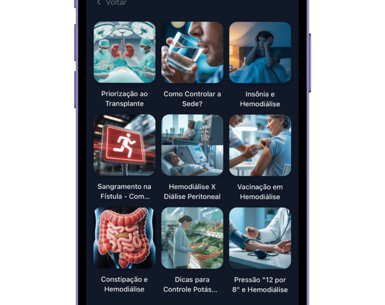 É um aplicativo criado para apoiar pacientes em hemodiálise, familiares e cuidadores, oferecendo monitoramento, educação e ferramentas que organizam o dia a dia do tratamento.